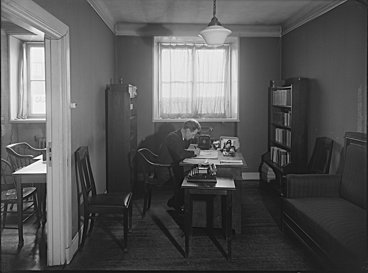 Interiör från redaktör Emil Olovssons arbetsrum på Västmanlands Folkblad, Västerås.
