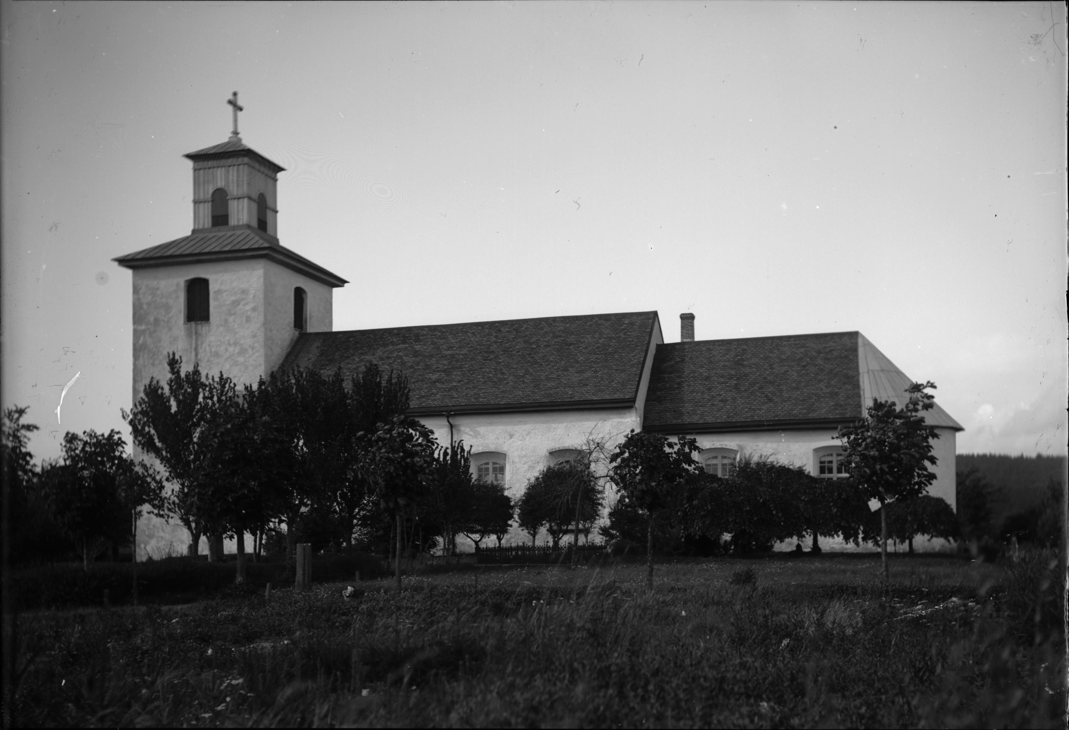 Kyrkan från söder. Snabbinv. 1918.