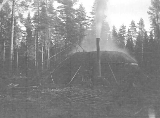 Man med hund vid skorstensmila.
