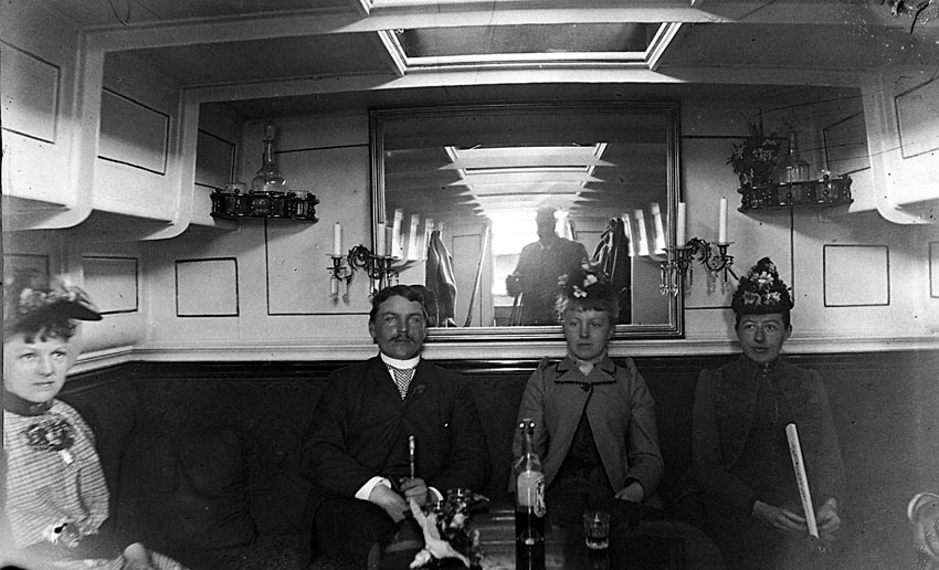 I ångbåtssalongen, interiör med passagerare. Västmanland.