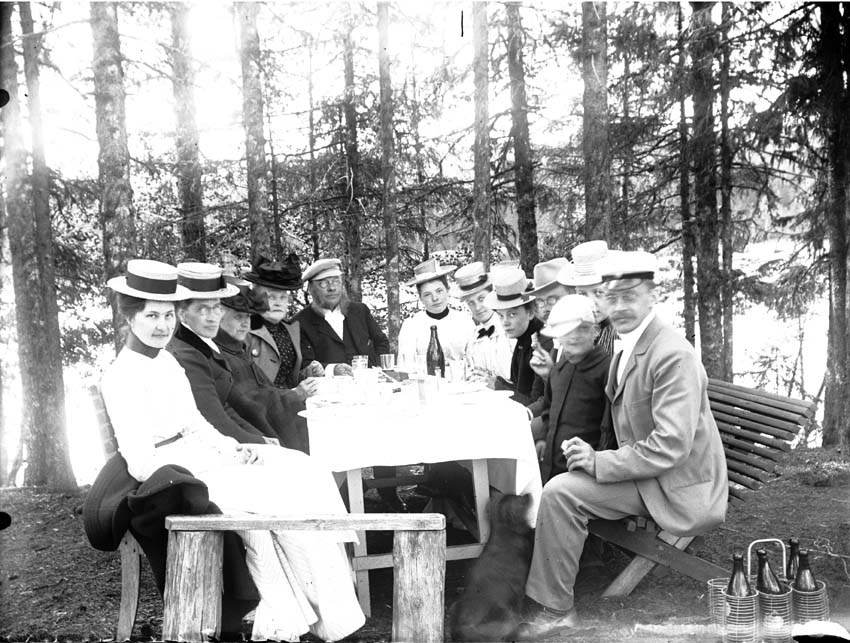 Grupporträtt, familjen Mellgren med vänner, Lillhärad, ca 1910.