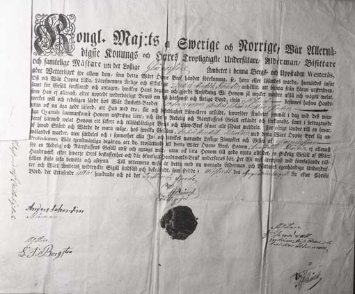 Gesällbrev 1834, glasmästare Anders Hindrik Scherdin.