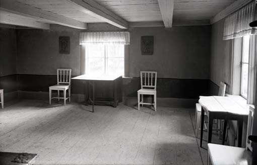 Titel: Interiör av helgdagsstugan vid prästgården på Vallby friluftsmuseum i Västerås.