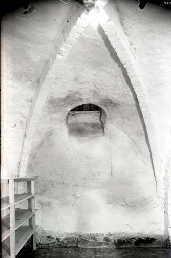 Källare under Komministergården, igenmurat väggparti, Östra kyrkogatan 5 i Västerås.