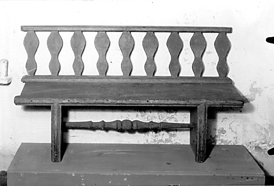 Bänk med hyvlade dockor.