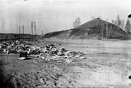 Lådor, papper m.m. Vid Ströbohög, Köping.