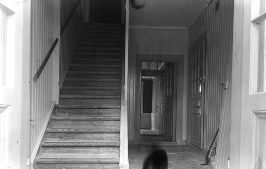 Förstuga och trapp till andra våningen, Väsby Kungsgård, Sala.