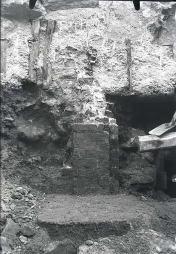 Stenhäll och murat parti, Sankt Nicolai kyrka, Stora gatan 44, Västerås.