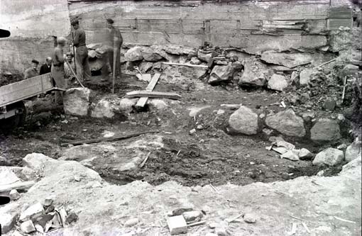 Parti av kyrkomuren, Sankt Nicolai kyrka, Stora gatan 44, Västerås.