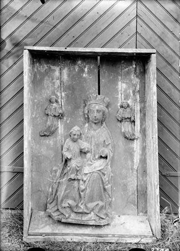 Madonna med barnet, träskulptur, corpus till altarskåpet, Möklinta kyrka i Möklinta.