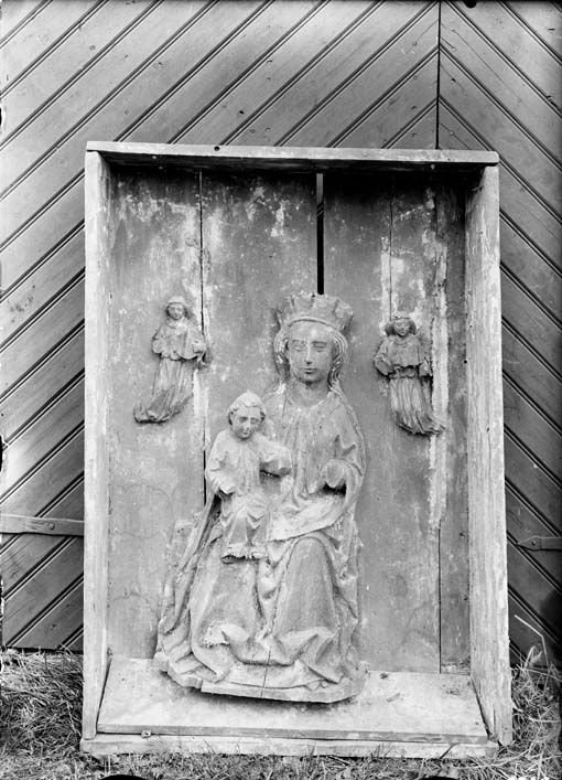 Madonna med barnet, träskulptur, corpus till altarskåpet, Möklinta kyrka i Möklinta.