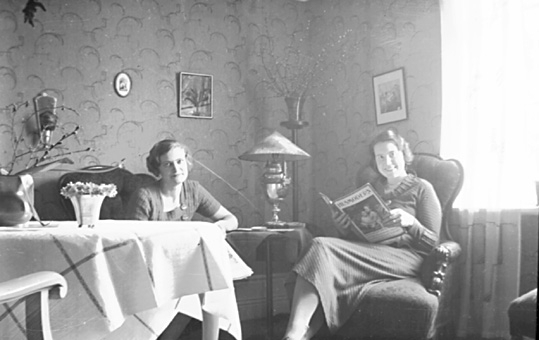 Grupporträtt, fröknarna Sandstedt kopplar av.