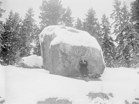 Titel: Porträtt, man vid "Stora sten", flyttblock.