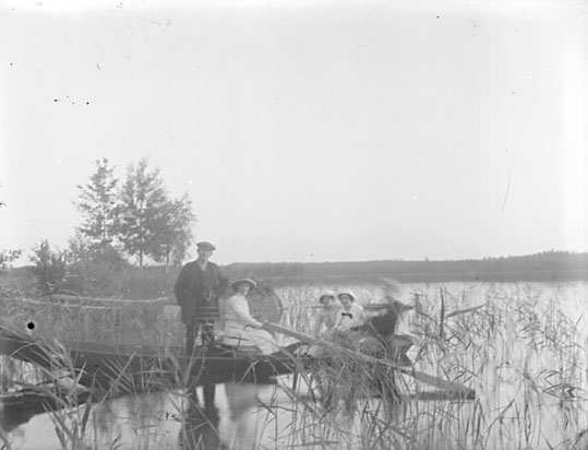 Grupporträtt, sällskap i eka vid sjön Åmänningen?