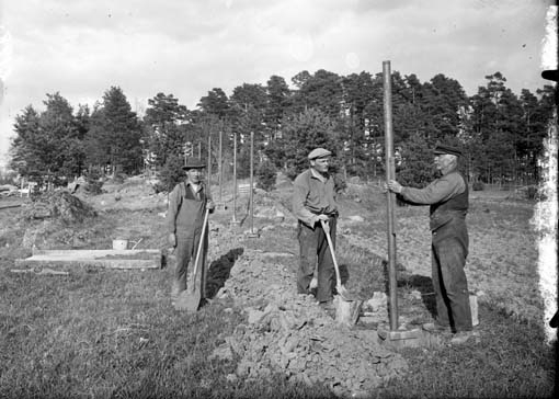 Uppsättning av staket på Vallby friluftsmuseum i Västerås.
