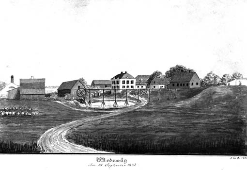 "Vedevåg", bruket och herrgården, lavering av J.G. Schultz.