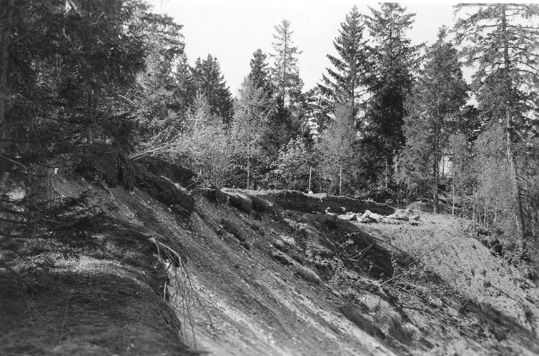 Gravhög intill kant på grustag, under utgrävning, vid mejeriet på Badelundaåsen i Tibble.