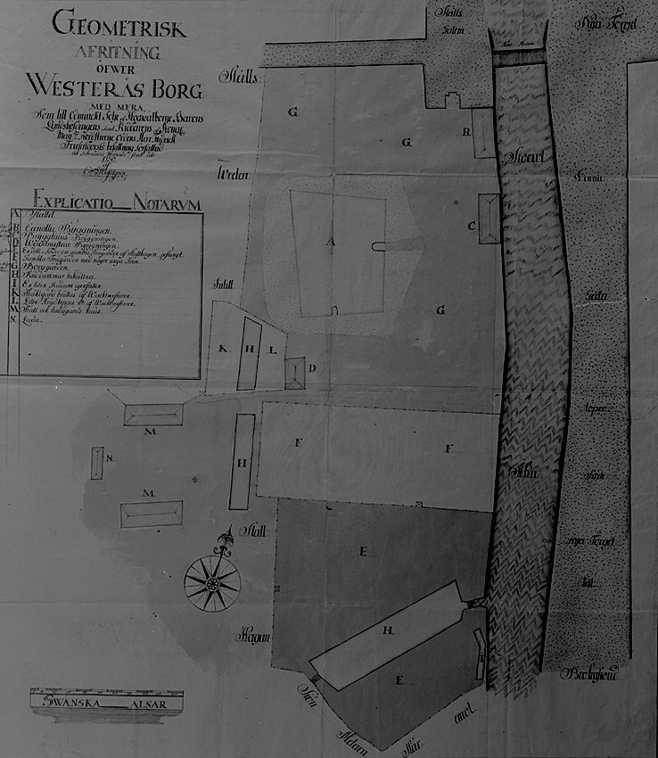 Titel: Karta över Västerås slott med omgivning 1750. Carl Hesselgren.