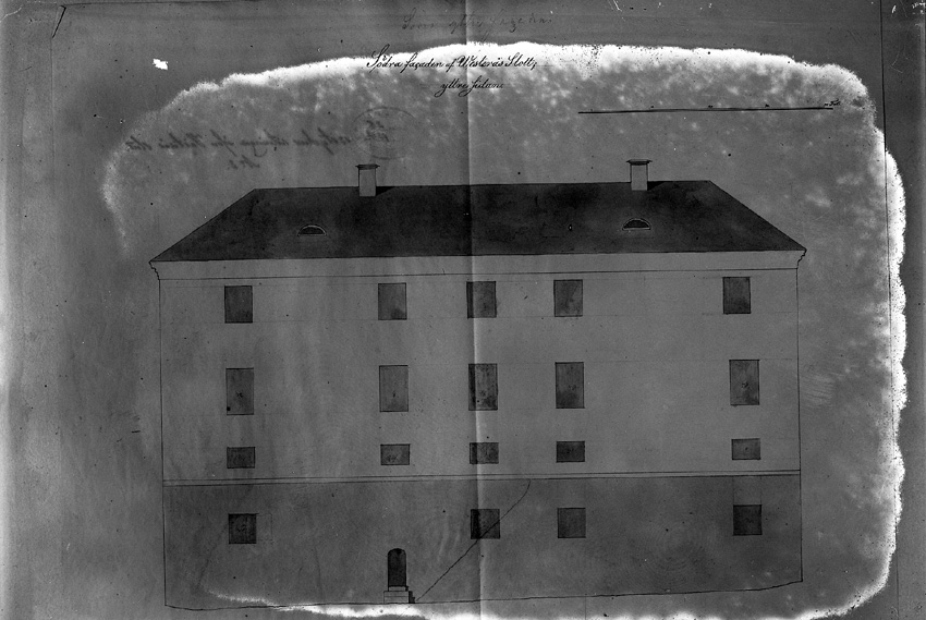 Västerås slott. Ritning, södra längans ytterfasad före 1920,