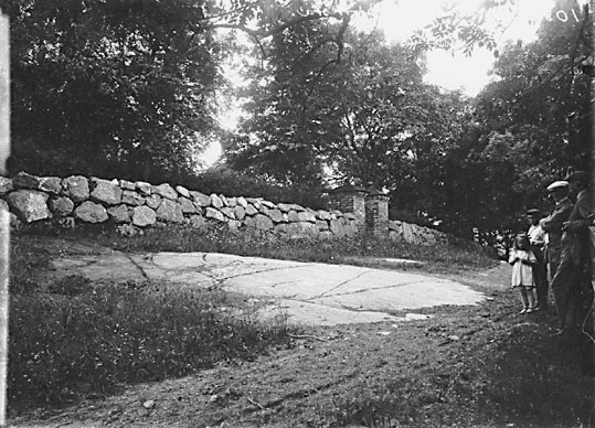 Hällristningar på Kyrkvallen utanför Björksta kyrkas kyrkogårdsmur.