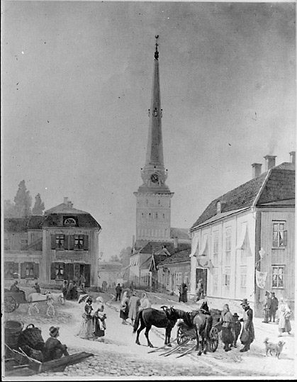 Oljemålning med Västeråsmotiv av G.W. Palm.