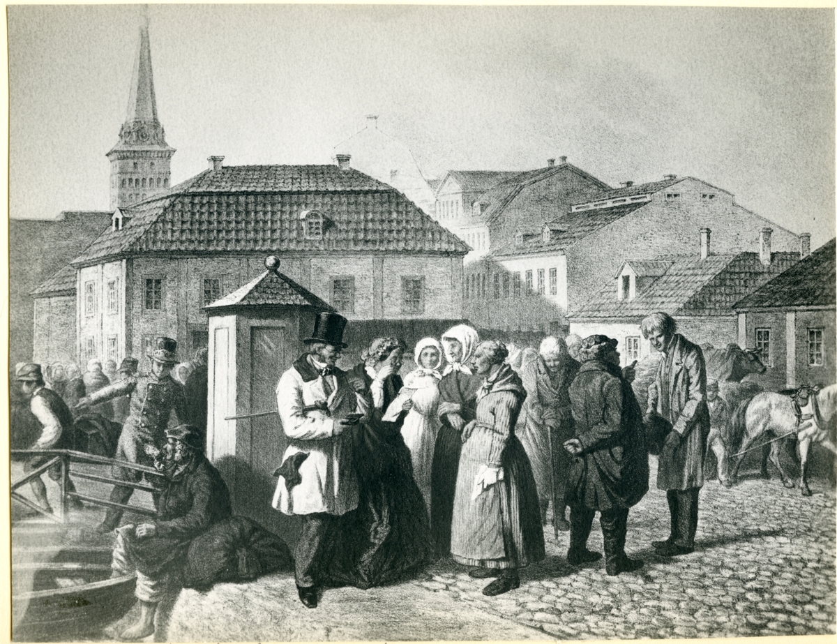 "Folkmarknad". Målning av J. N. Wallander, föreställande Johan Wilhelms torg.