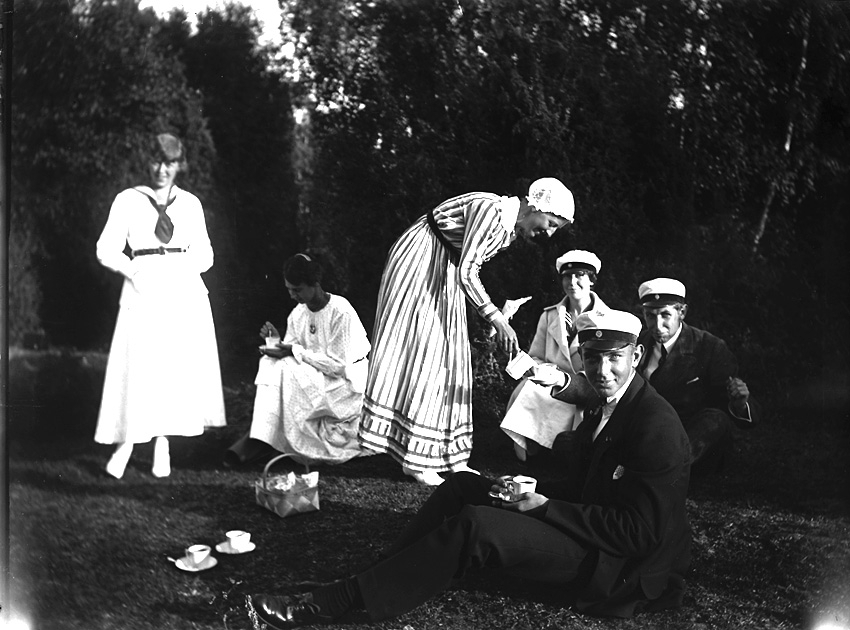 En grupp människor dricker kaffe i det gröna i Ryd, Småland.
