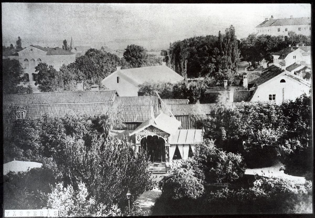 Stadsparken, med paviljongen och Wickholms kvarn.