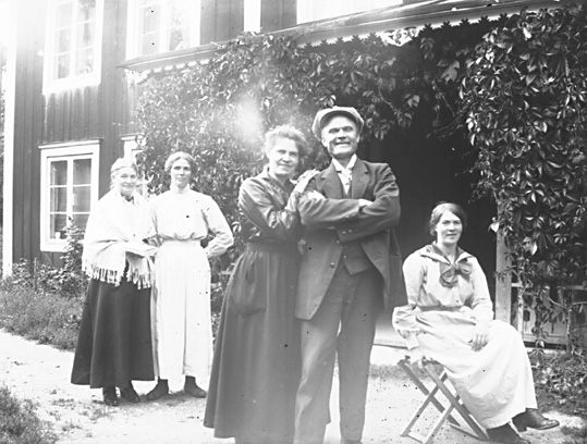 Grupporträtt framför veranda.