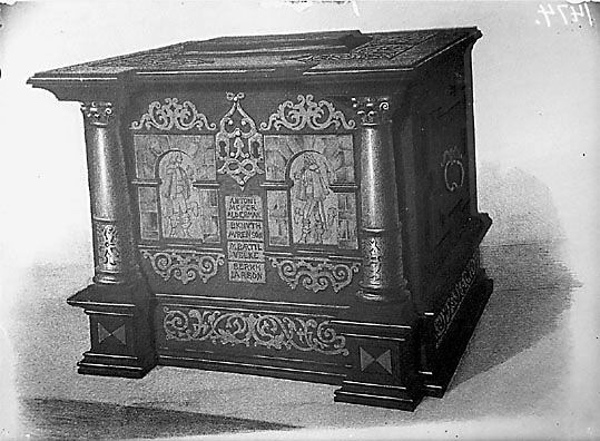 Avbildning av skomakarnas i Västerås skrålåda, Nordiska museet i Stockholm.