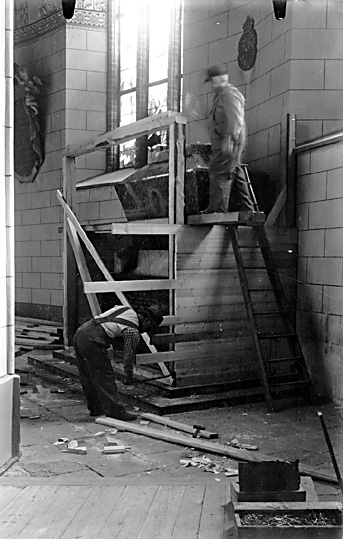 Erik XIV:s grav skyddas mot bombsplitter, Västerås Domkyrka i Västerås.