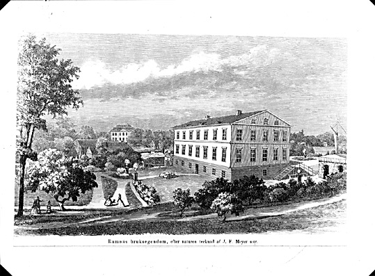 Ramnäs Bruksherrgård, träsnitt från 1865 av J.F Meyer.