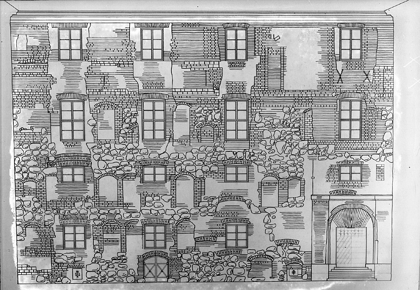 Västerås slott, Fasadritning, västra längans borggårdsfasad, uppmätning 1937.