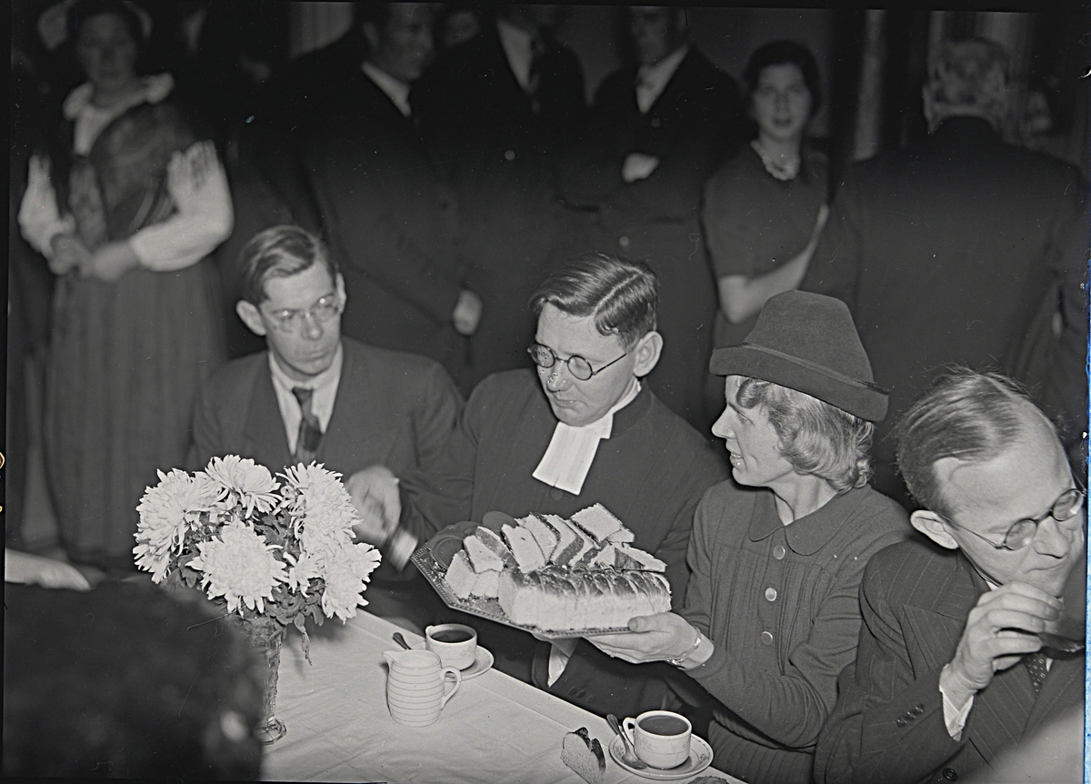 Kaffestund efter invigningen av Stora Rytterne kyrkoruins renovering.