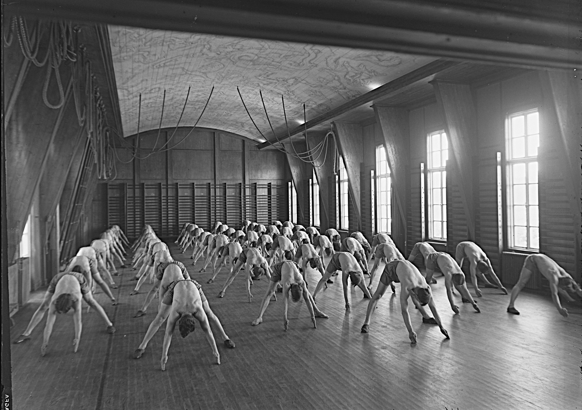 Titel: Gymnastikövningar i Tärna Folkhögskola.