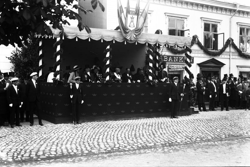 Titel: Konung Gustav den V:s besök i Sala vid 300-årsfirandet.