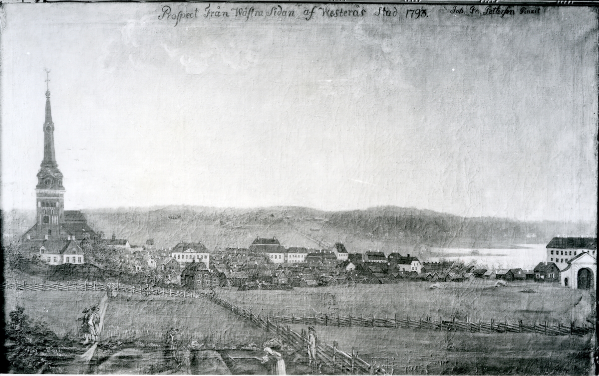 Oljemålning med Västeråsmotiv av Joh. Fr. Petterson från 1793.