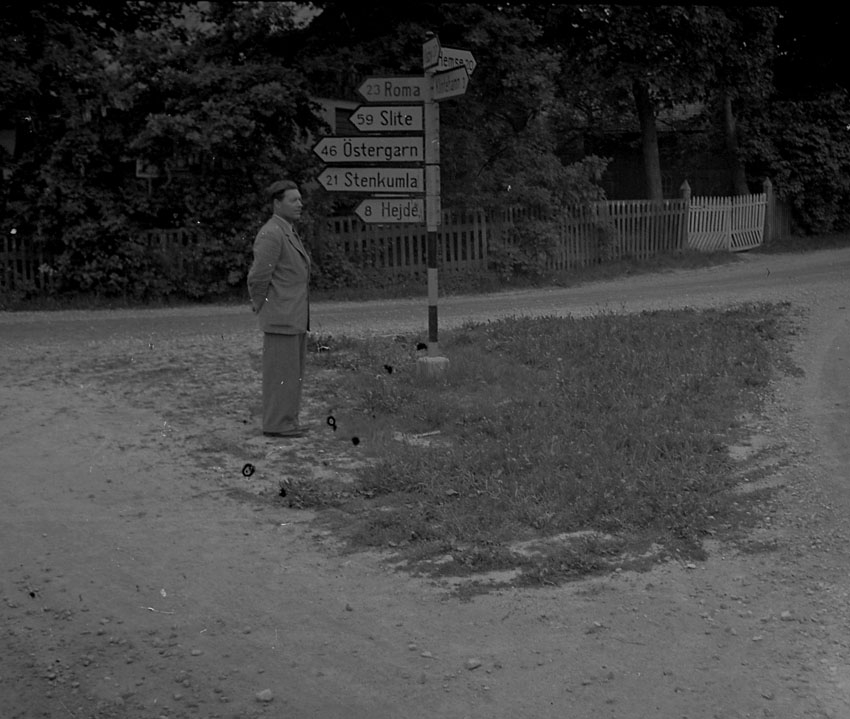 Trafikskylt, ortsnamn med kilometeravstånd, Gotland.