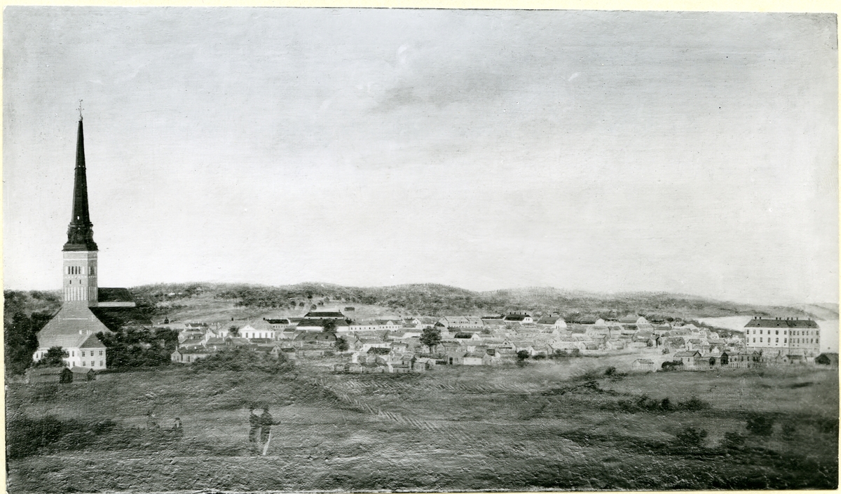 Oljemålning från 1830-talet med vy över staden, från väster.