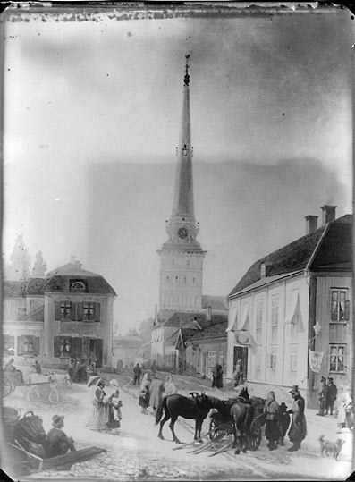 Oljemålning med Västeråsmotiv av G. W. Palm.