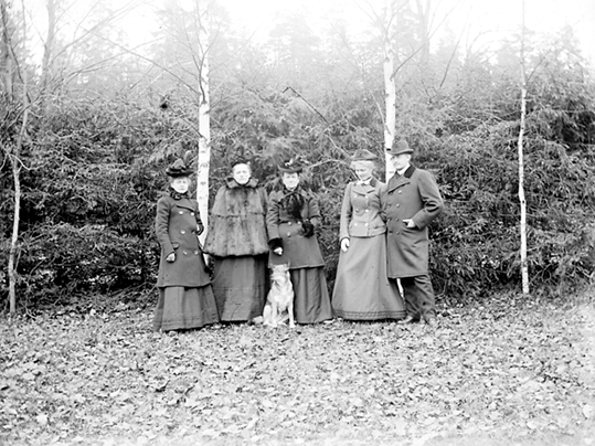 Fyra damer, en herre och en hund. Riddarhyttan.