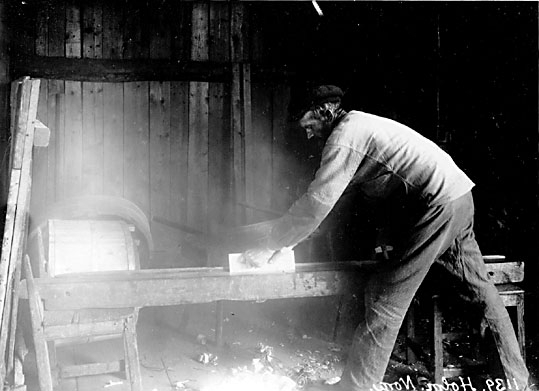 Laggning. Kimmens sidor hyvlas på "strykski."? 1924.