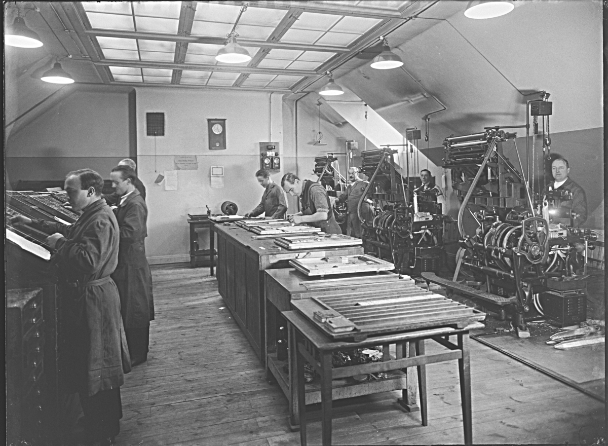 Interiör från Västmanlands Folkblads sätteri, Västerås.