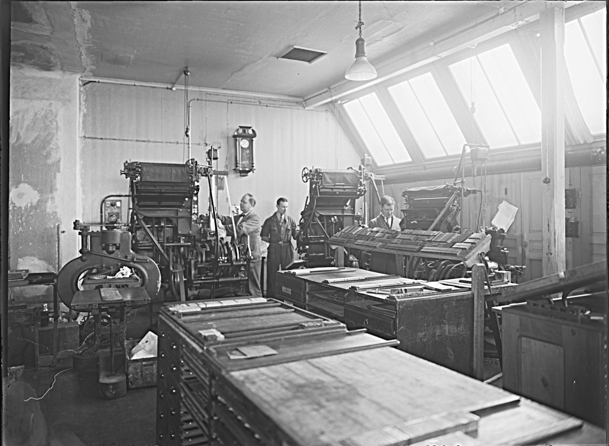 Interiör från Västmanlands Läns Tidnings sätterilokal, Västerås.
