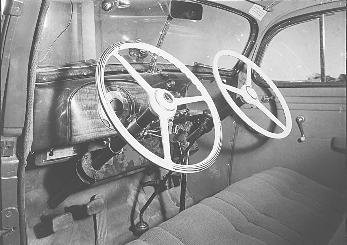 Förarplats i personbil från Söderströms körskola, Västerås.