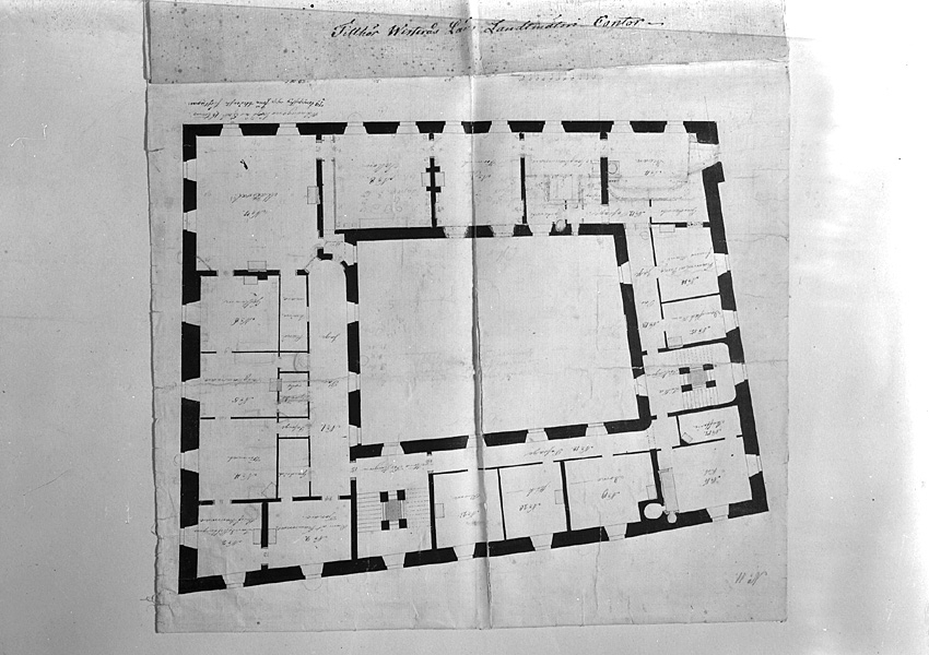 Västerås slott. Planritning översta våningen, tre trappor upp. Uppmätning J. Enander 1817.