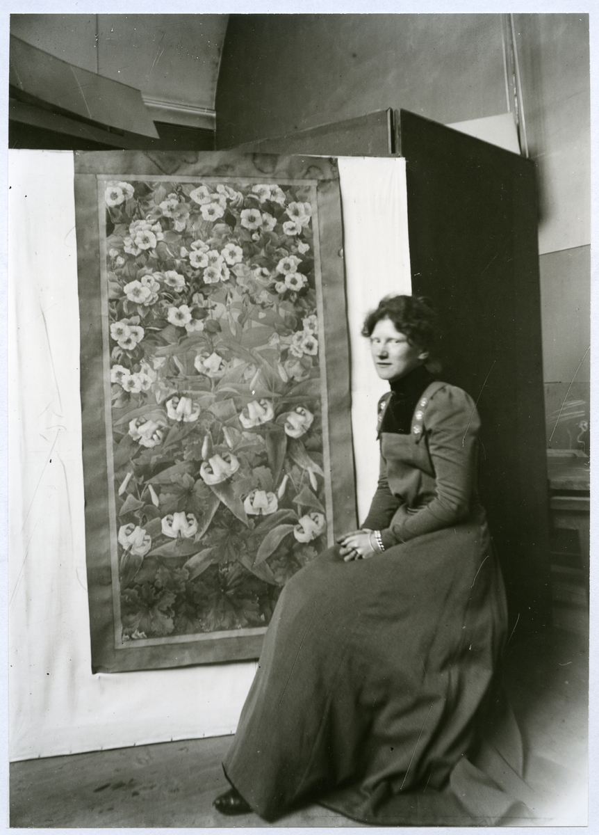 Titel: Stockholm. Kvinna sittande framför målning. 1901.