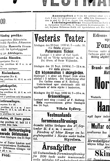 Teaterannons, Västmanlands läns tidning 1890.