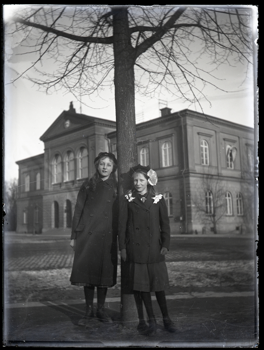 Två skolflickor vid Fiskartorget,