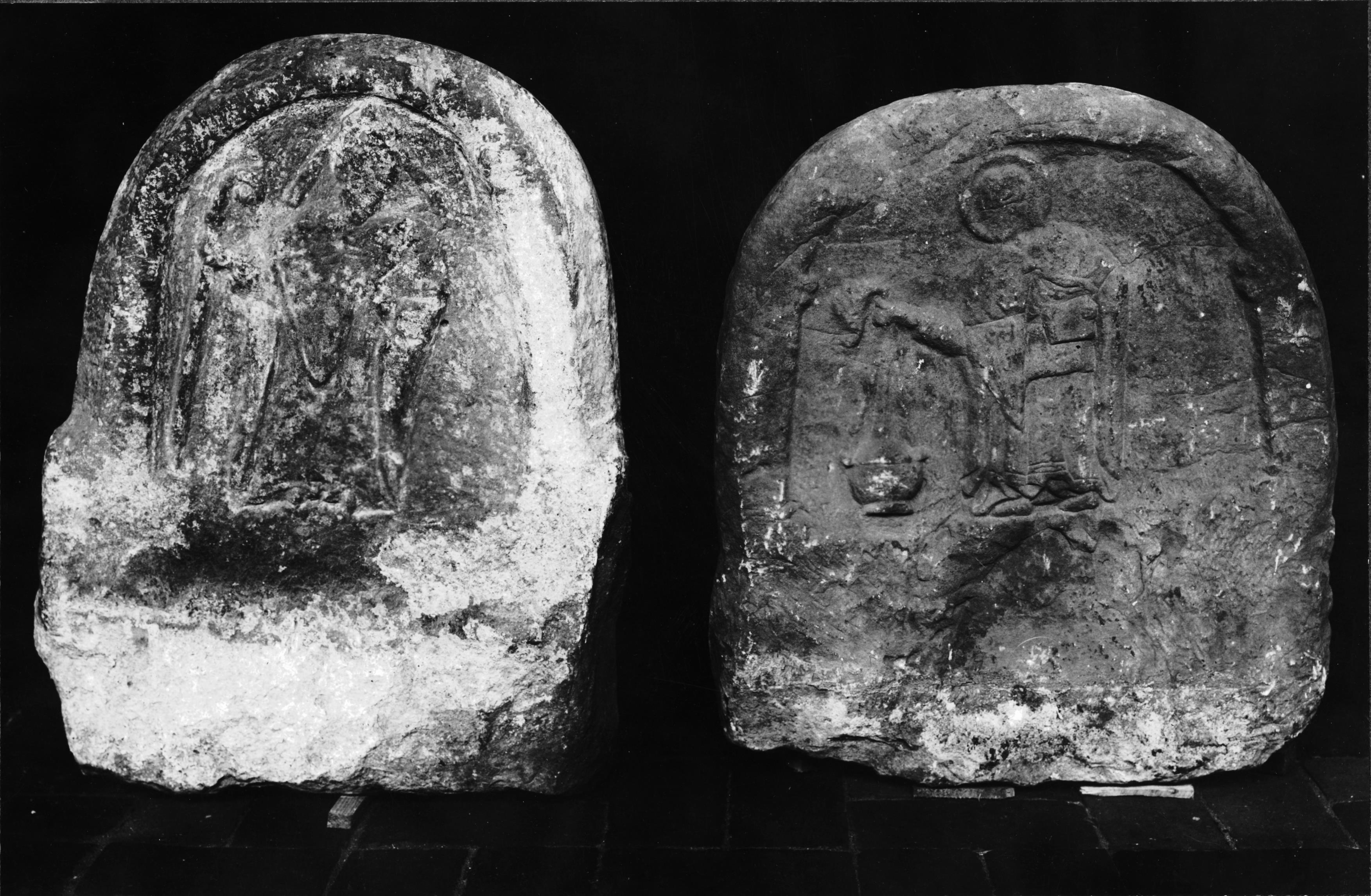 Beskrivning: Gavelhällar till grav från omkring 1200.